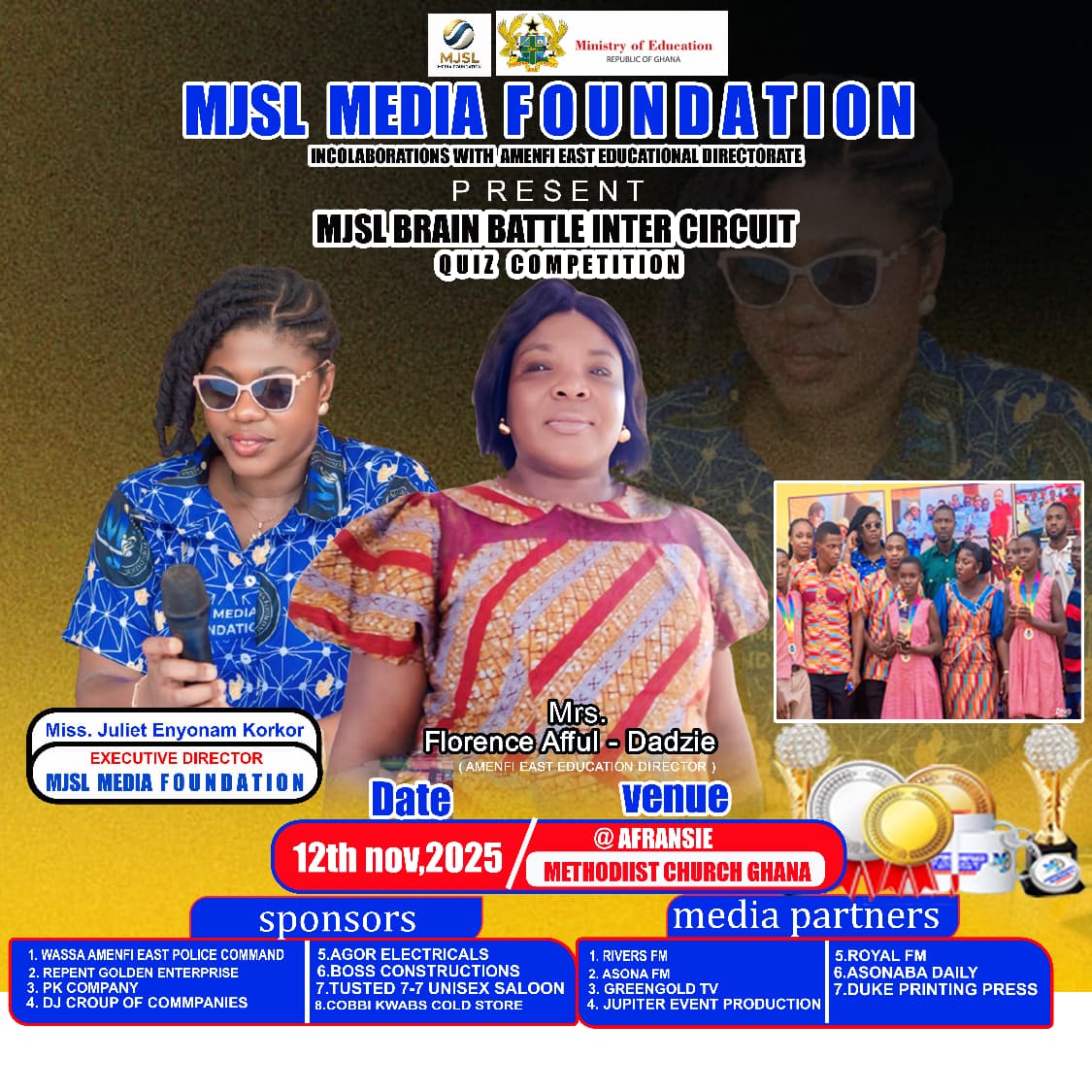 Four circuits in the Amenfi East Municipality of Western Region meet to battle for the best circuit on the MJSL BRAIN BATTLE INTER CIRCUIT QUIZ COMPETITION to be held next week Wednesday, Nov. 12 2025 at Wassa Afransie exactly 10:00 AM. Afransie Circuit vs Akropong A vs Akropong B vs Nananko Circuit